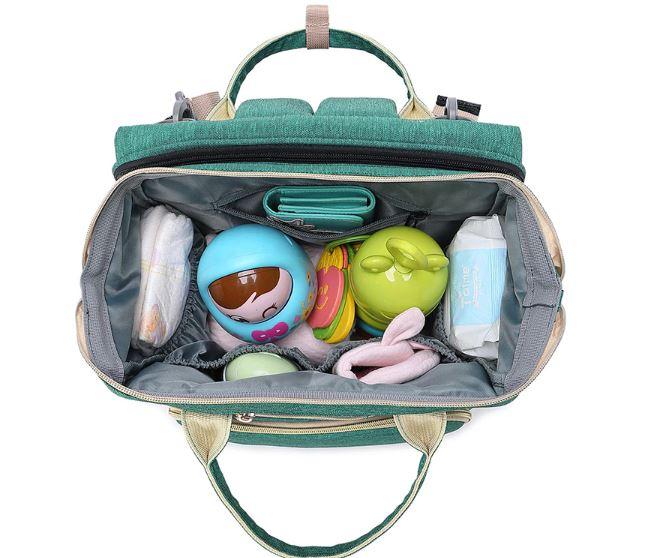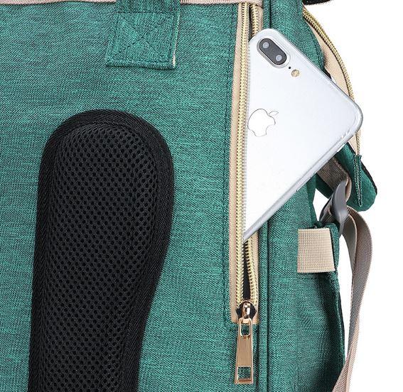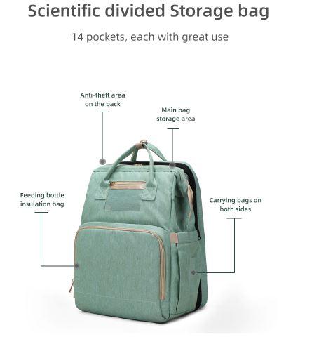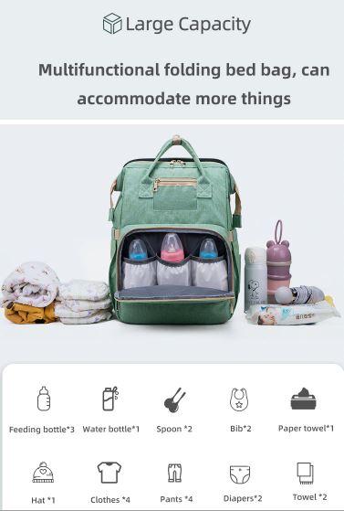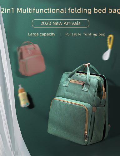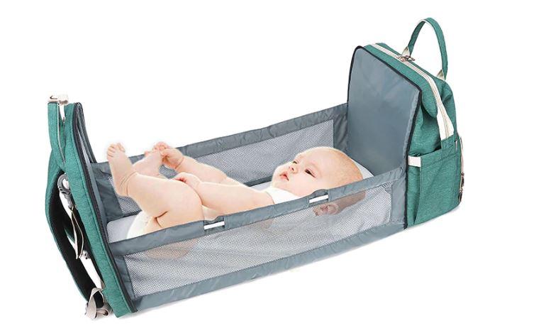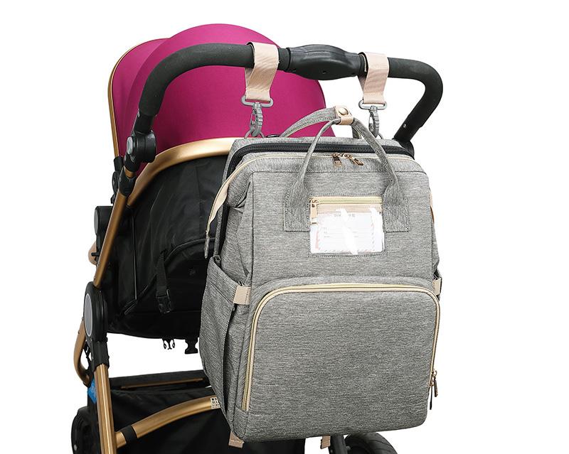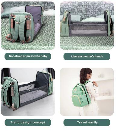 This stylish diaper bag combines as a travel crib, nappy bag, and portable baby changing station all in one It also can be used as a backpack, crossbody bag, handbag, or just hanging on a stroller.