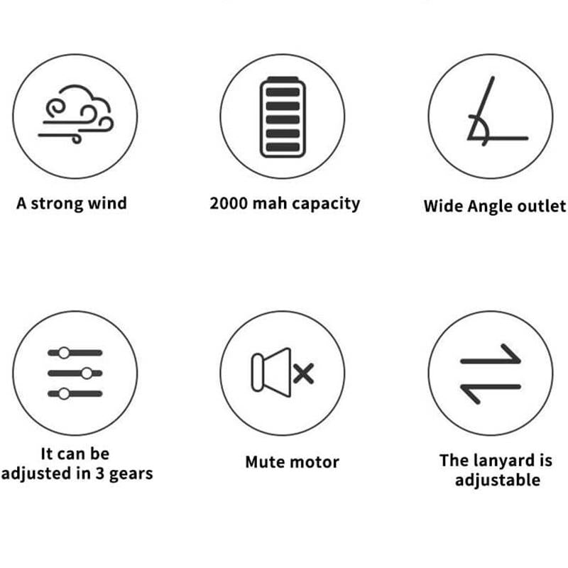 Versatile - The hanging fan's built-in 2000mAh lithium battery provides 3-10 hours of continuous operation (depending on wind level). It can charge it quickly and conveniently using a USB connection like USB devices, such as a PC, power bank, or socket. There is also a warning screen to remind you to charge the device in time for the next use.