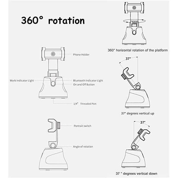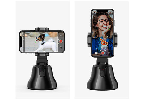 - If you encounter these problems: you can't record video without a photographer; you can't take photos by yourself; when you need to release your hands, the fixed bracket is not flexible; you will be tired if you hold the video call for too long, all these 360-degree rotation auto face tracking camera holder mount and object tracking camera phone holder will help you solve the problem. Let your phone follows you. Take selfies and no longer ask for help.