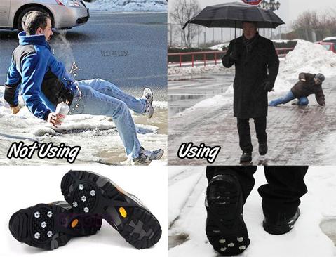 High quality stretch rubber, which fit in everyone's shoes! Our products not only suitable for men or women, but also easy to wear over your shoes! Keep you from slipping when you walk on slippery ice ground!