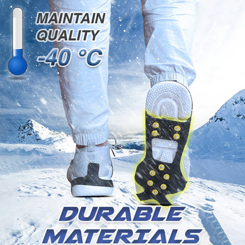 Made of durable black rubber with ten anti-slip great quality steel studs, which maintains powerful performance under -40 °C, offers excellent grip on ice and snow!