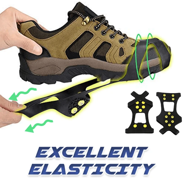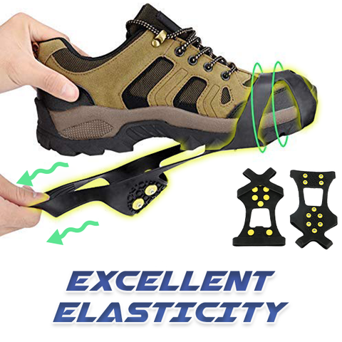 10 Studs Ice Gripper Spike Anti-Skid is made by durable materials, black rubber with ten anti-slip great quality steel studs, which maintains powerful performance under -40 °C! The excellent elasticity rubber, fit in everyone's shoes too!