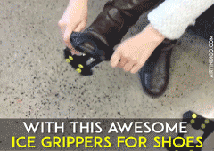 Our ice gripper fits well over your footwear and really easy to take on and off in one second! Able to roll up small enough in a pack and lightweight. You can carry around easily in your purse, backpack or even in your pockets!