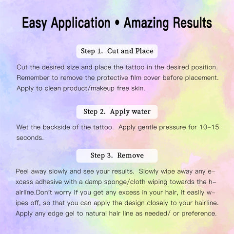 Just moisten the sticker with a small amount of water, then wait 10-15 seconds and then tear it apart to get natural baby hairs.